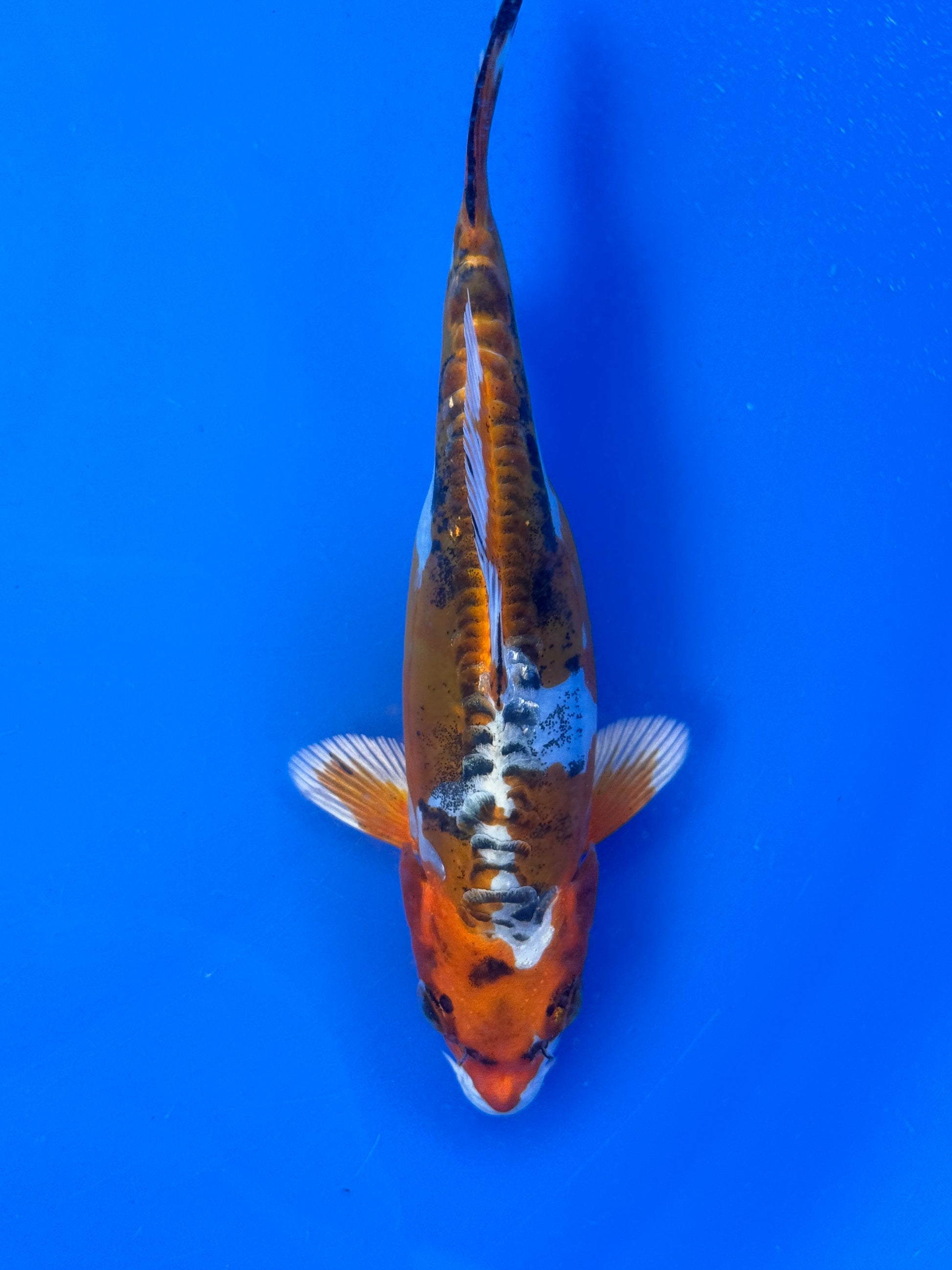 Beni Kikokuryu is a variety of koi fish, essentially a metallic Kumonryu, featuring shiny platinum skin and fins with deep Sumi colors, known for their lustrous shine and tendency to change colors throughout the year.