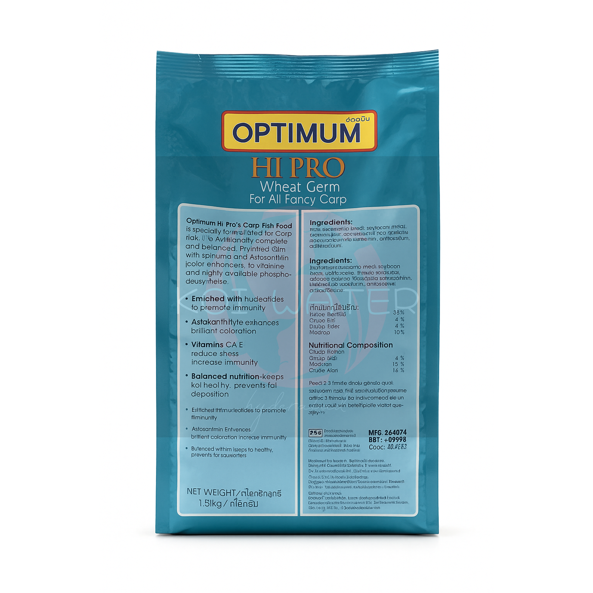 Optimum Hi Pro™ Wheat Germ 1.5 KG is the perfect feed for koi enthusiasts who want a gentle yet powerful year-round diet that enhances both health and color.