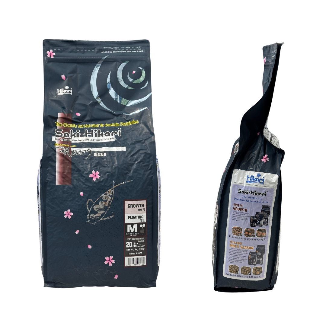 The Saki-Hikari Growth formula is a professional-grade koi food designed for accelerated growth, vibrant form, and championship health. Developed through decades of Japanese expertise, this diet supports superior development in koi while maintaining balance and digestive efficiency.